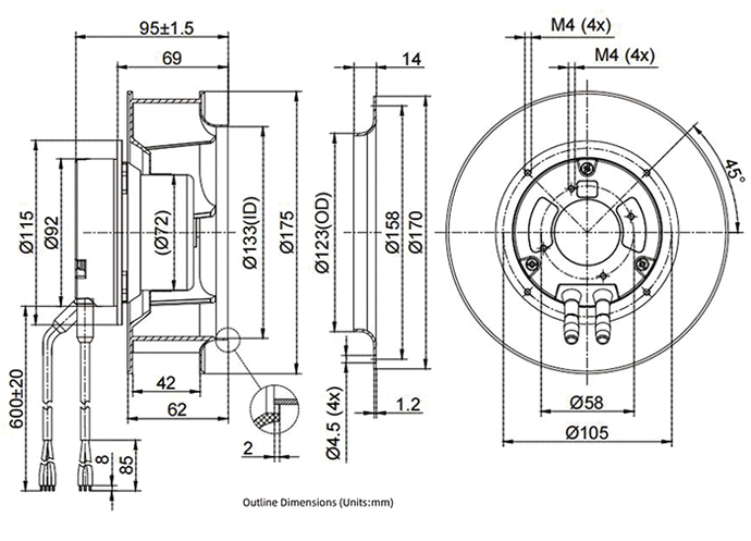 Operating Temperature :Fan:-25°℃(Min.)~60℃(Max.)Ball bearing :80℃(Max.)Heat sink oflc :115℃(Max.)Lead wire :120’c(Max.)Other electronic parts : 85℃(Max. )