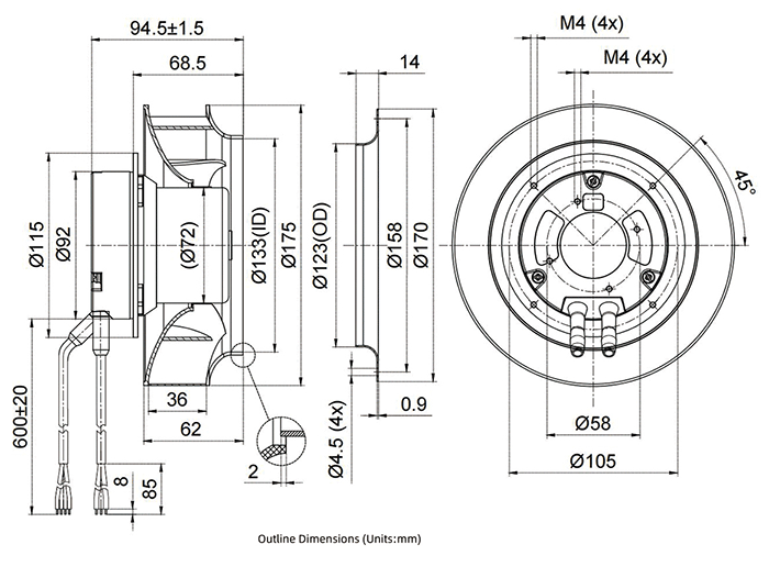 Weight :3600/400g(Fan/inlet)